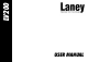 Laney OPERATING INSTRUCTIONS 21 22 28 23 24 25 26 27 21 Power inlet socket. Connect to your power source. Make sure the specified voltage is correct for your country! 22 This drawer contains the main safety fuse for the unit. USE ONLY THE CORRECT SIZE AND RATING OF FUSE AS SPECIFIED ON THE PANEL The mains fuse ratings are detailed in the specs section at the rear of this manual 23 Displays the model number, power requirements and serial number of the unit.