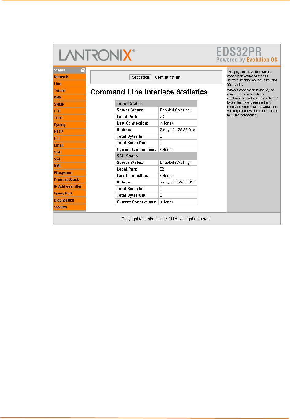 If you click Configuration at the top of the Command Line Interface Statistics page, the