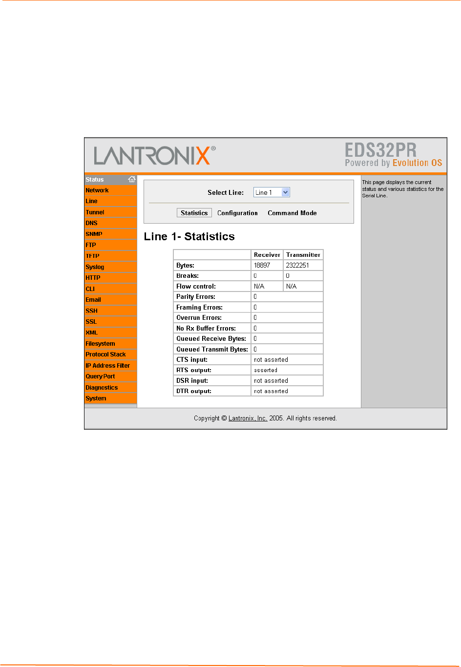The Line – Statistics page displays when you click Line in the menu bar. It also displays