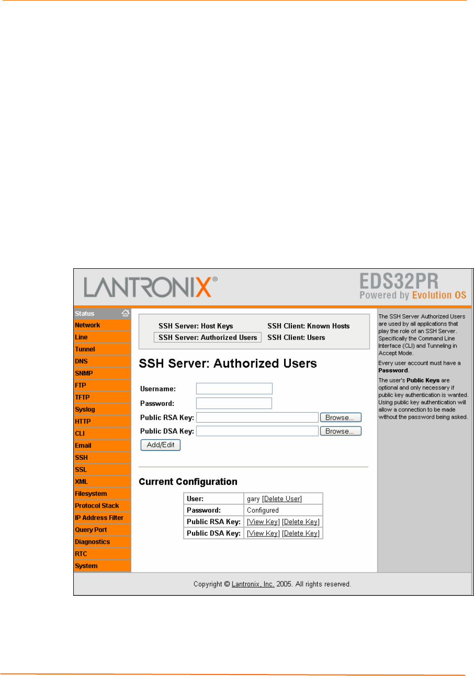 If you click SSH Server: Authorized Users at the top of one of the SSH pages, the SSH