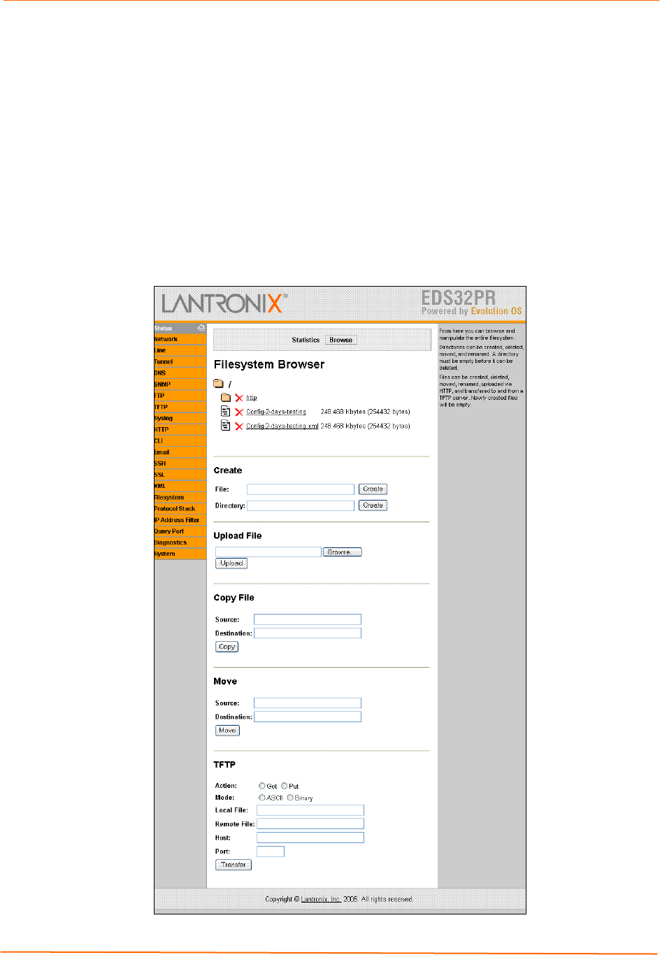 If you click Browse at the top of a Filesystem page, the Filesystem Browser page