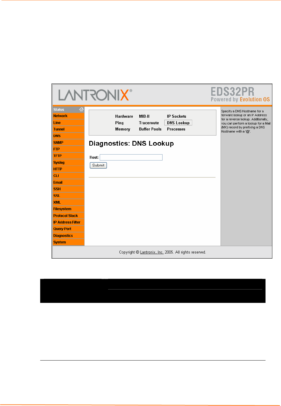 Figure 10-7 Diagnostics: DNS Lookup Page