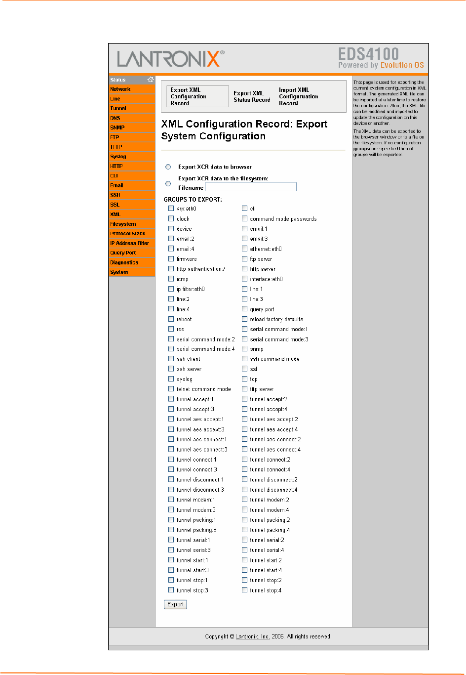 Figure 11-5. XML Configuration Record: Export System Configuration Page