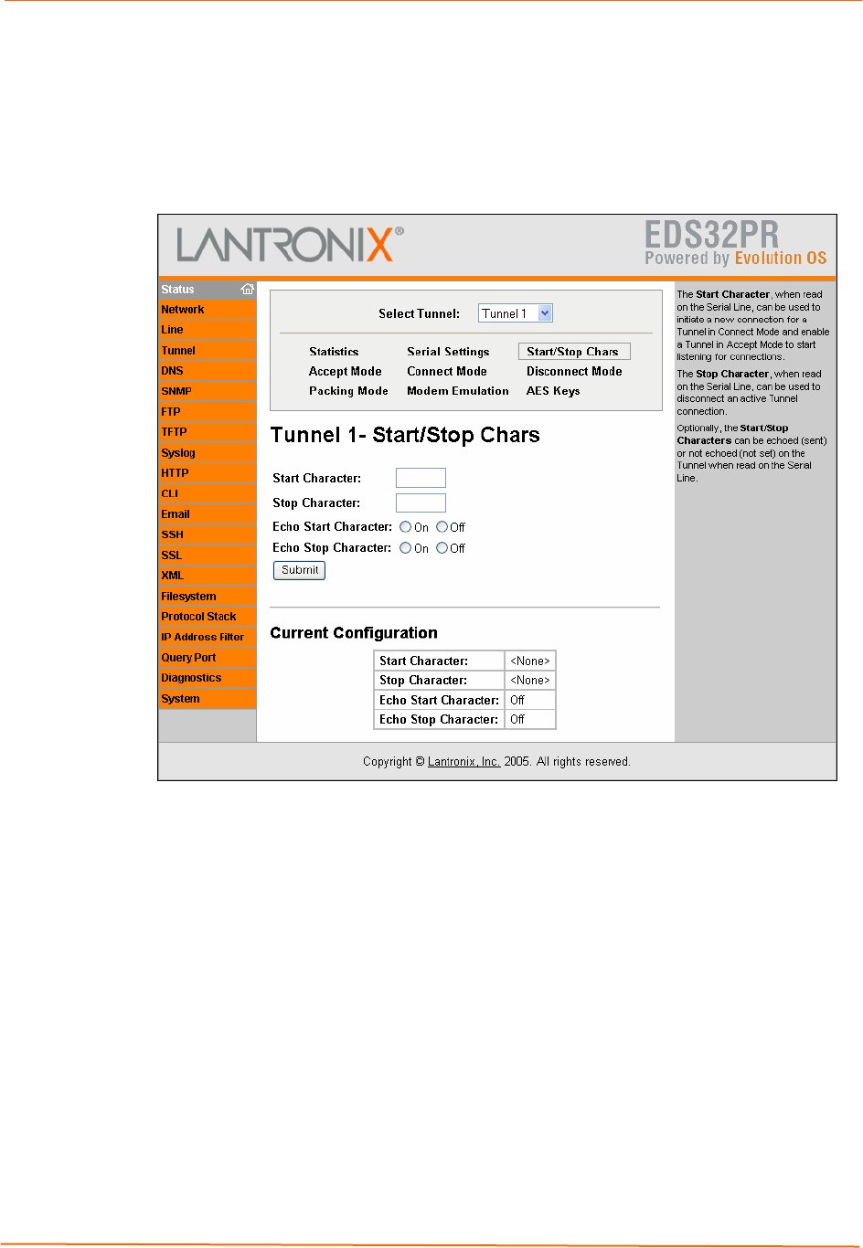 If you click Start/Stop Chars at the top of one of the Tunnel pages, the Tunnel –