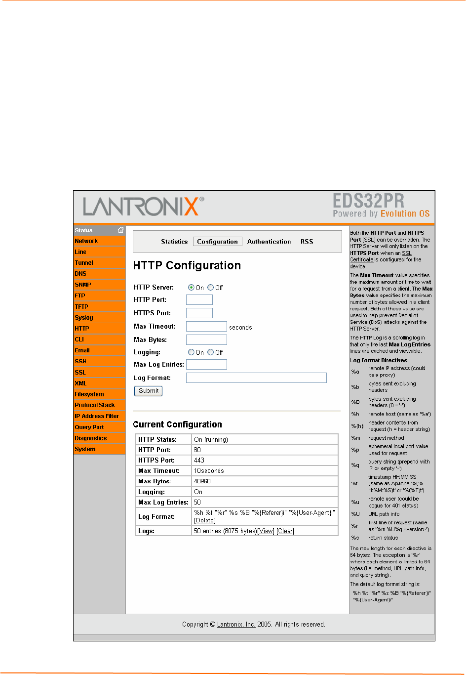 If you click Configuration at the top of one of the HTTP pages, the HTTP Configuration