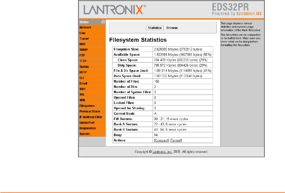 also displays when you click Statistics at the top of the Filesystem Browser page. This