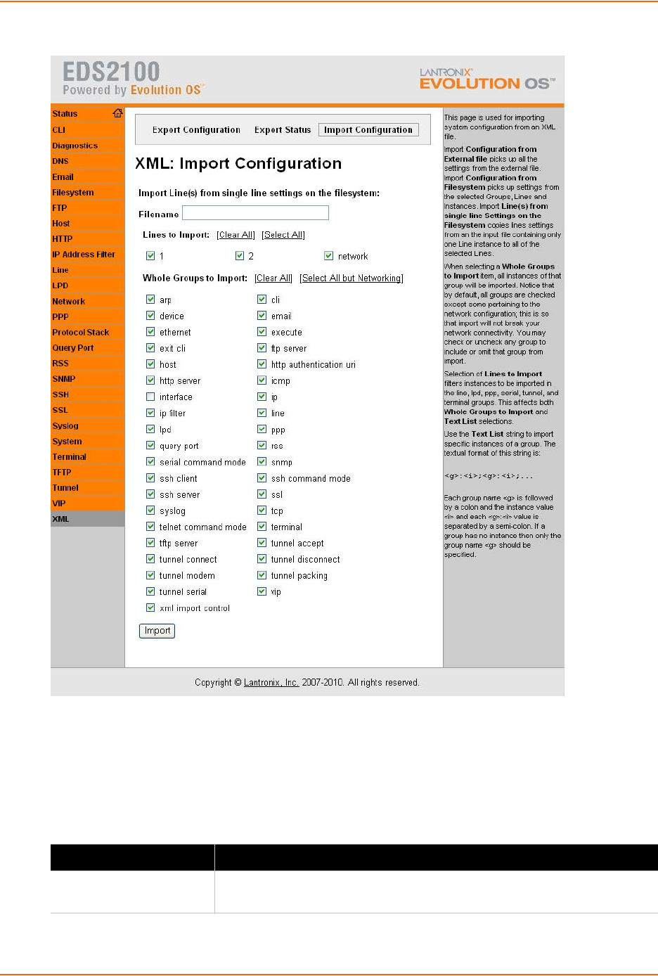 Figure 14-10 Import Lines from Single Line Settings on the Filesystem Web Page