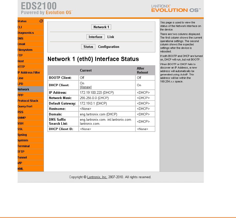Figure 7-1 Network1 (eth0) Interface Status Web Page