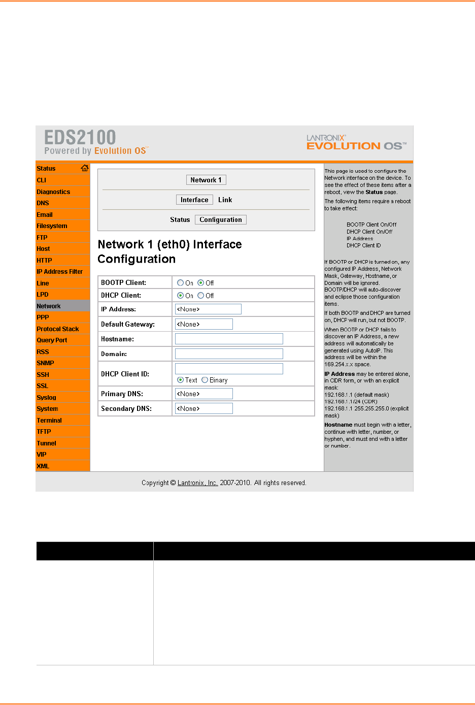Figure 7-2 Network 1 (eth0) Interface Configuration Web Page