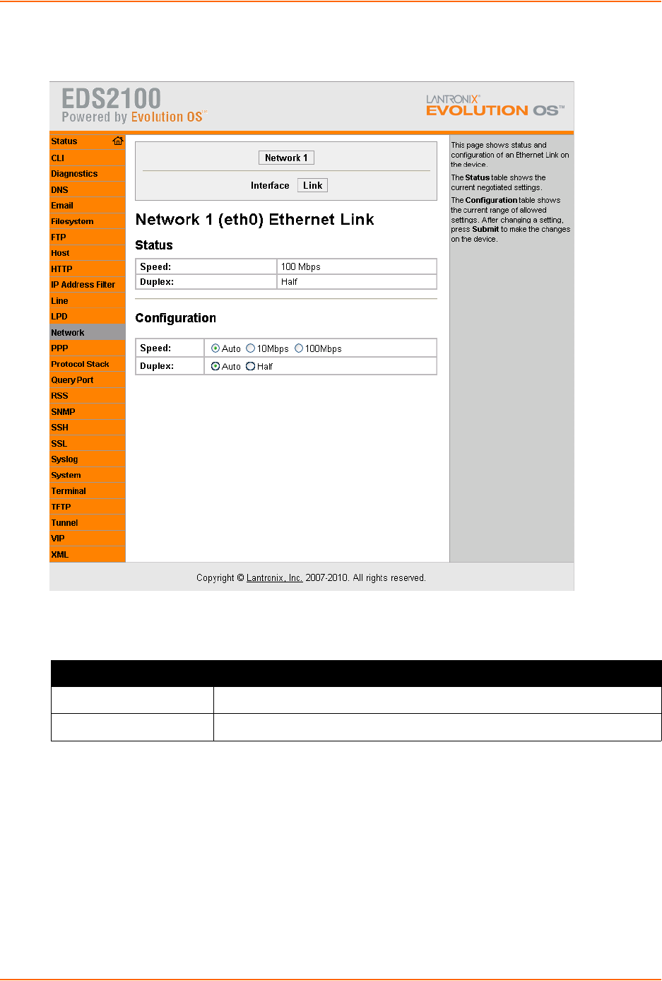 Figure 7-4 Network1 (eth0) Ethernet Link Web Page