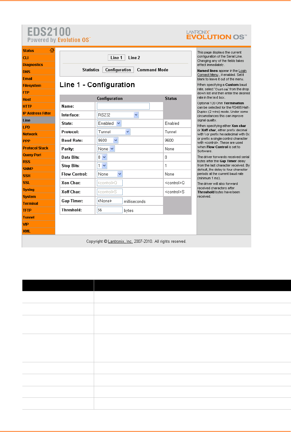 Baud Rate Select the baud rate from the drop-down menu. The default is 9600.