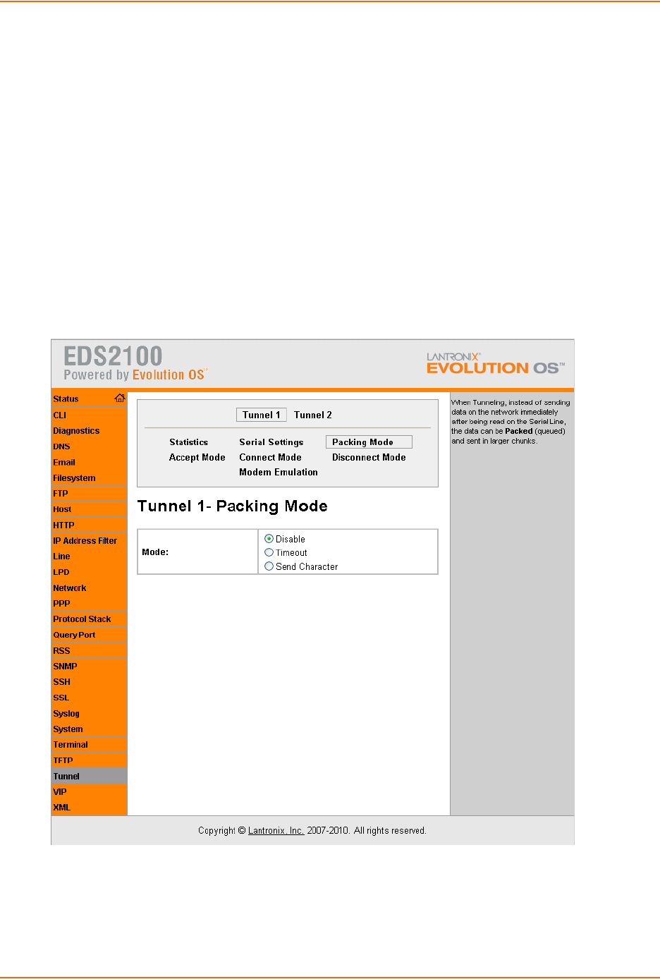 Figure 8-9 Tunnel 1 Packing Mode Web Page