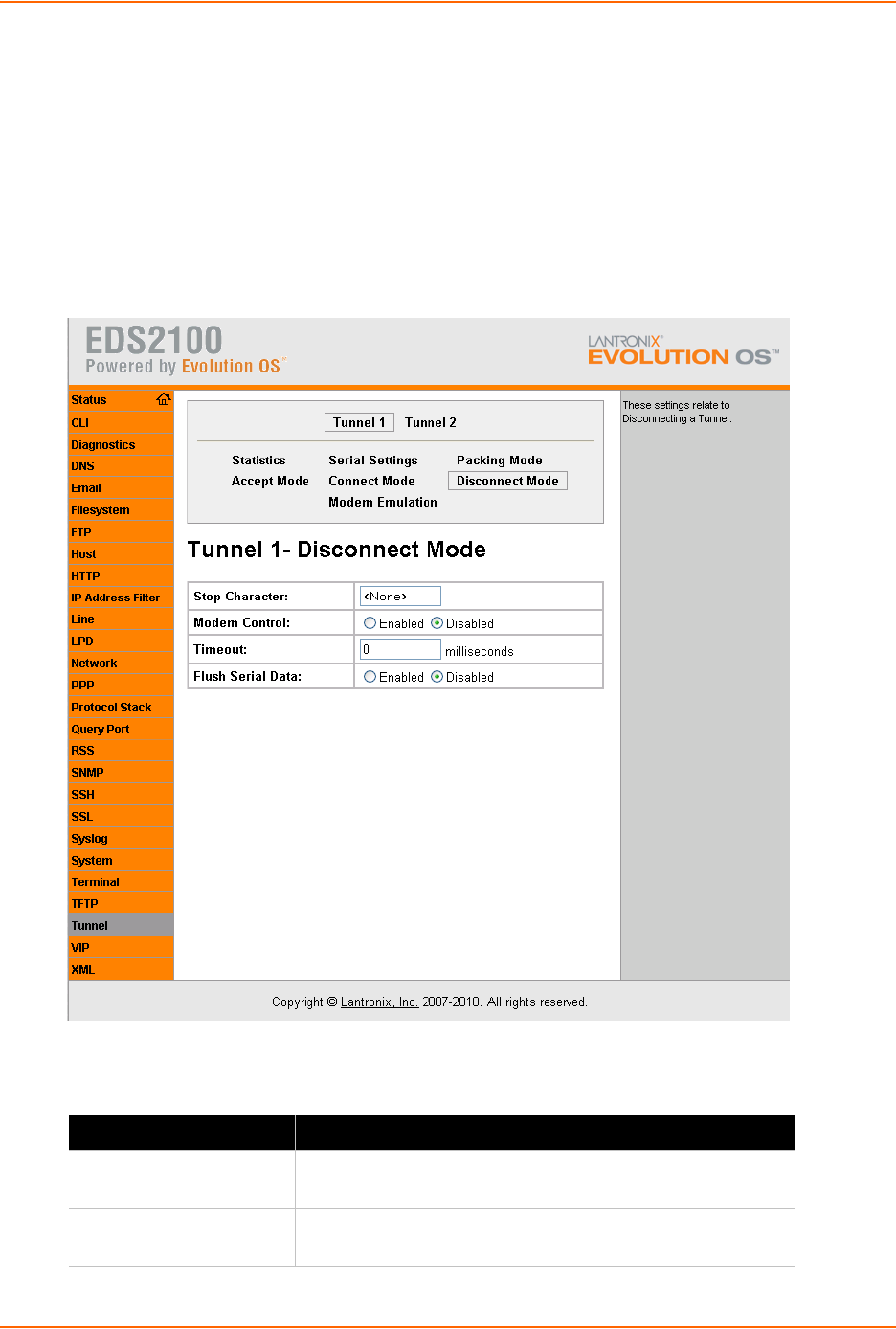 1. Click Tunnel 1 > Disconnect Mode. Figure 8-21 shows the page that displays.