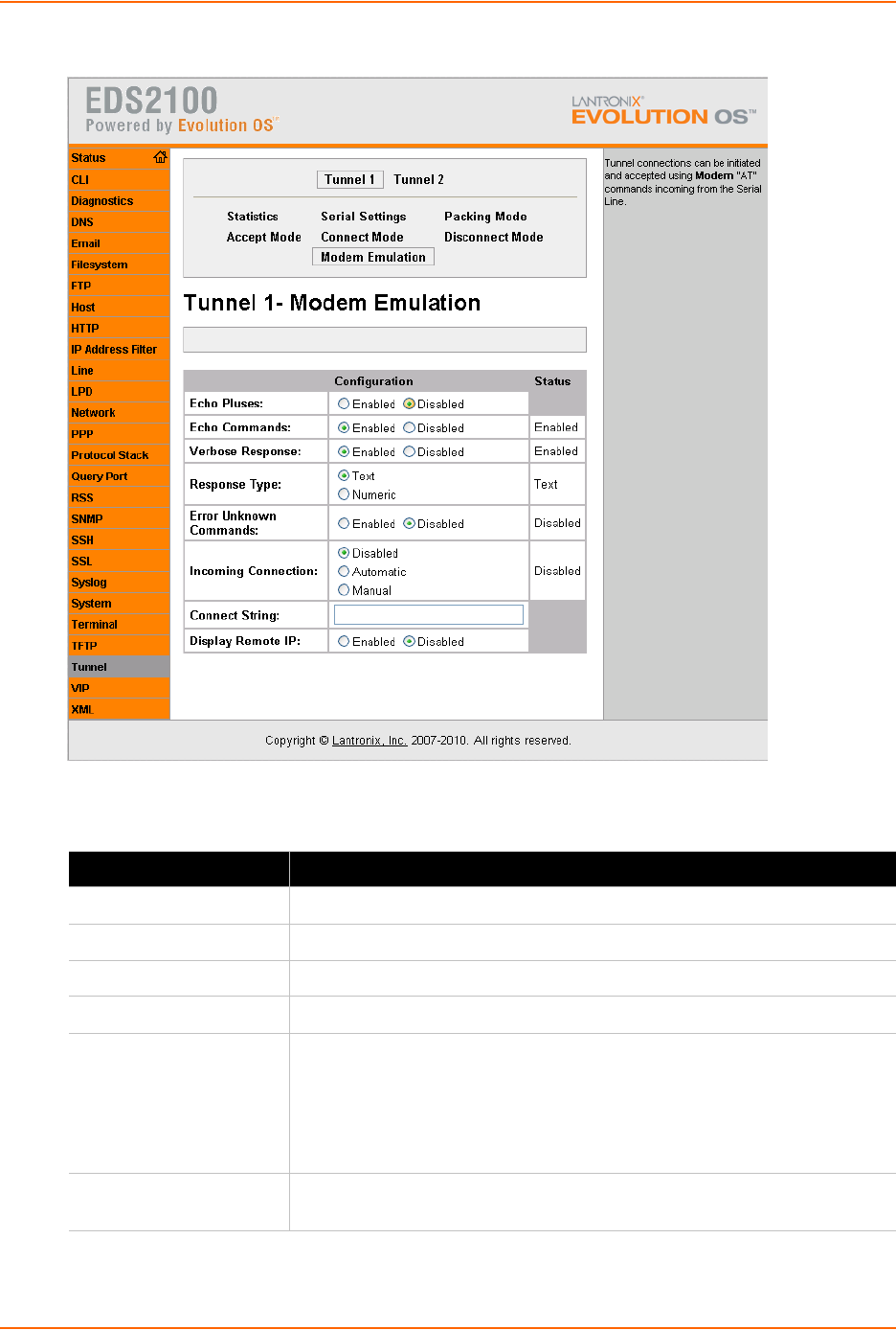 Figure 8-23 Tunnel 1 Modem Emulation Web Page