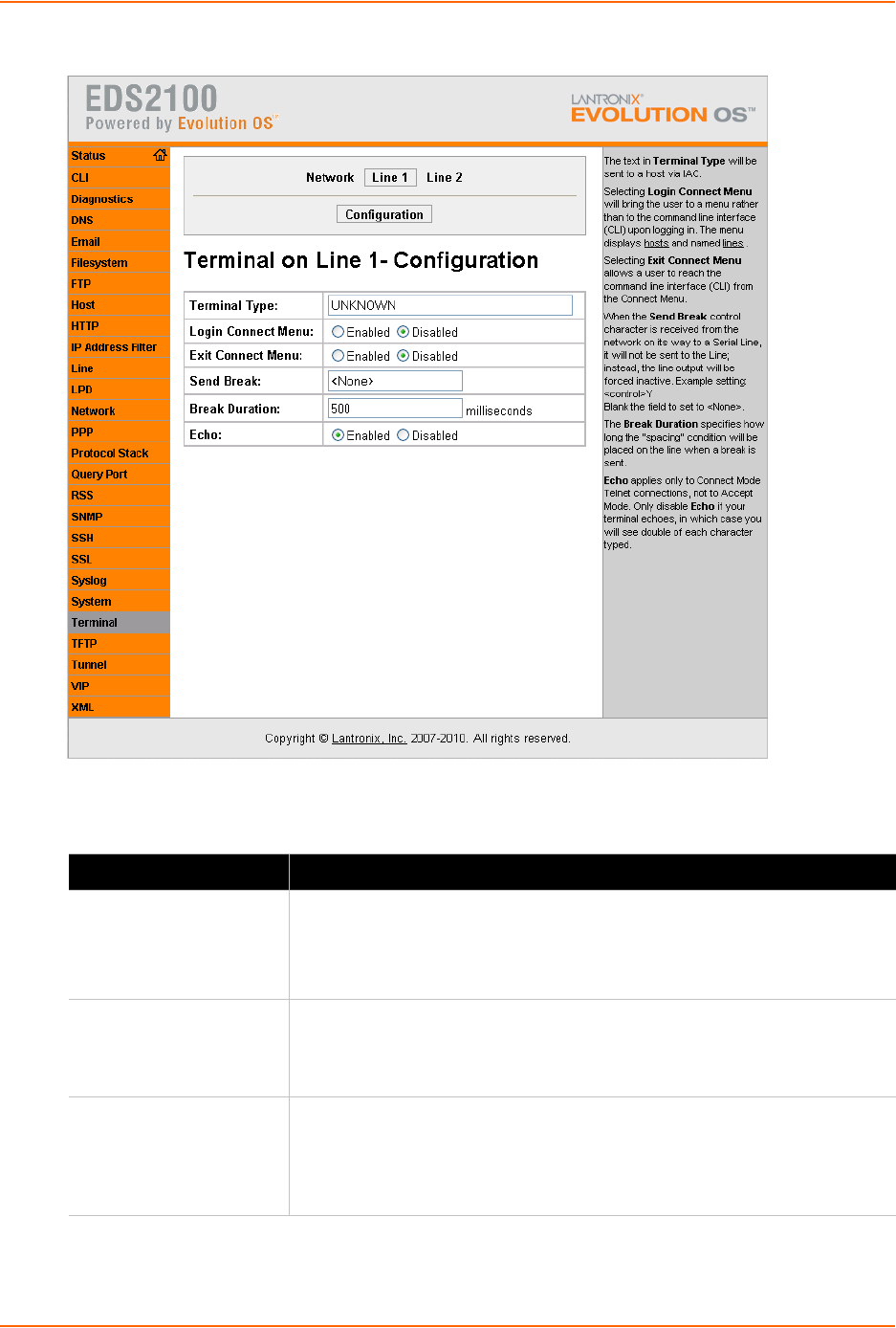 Table 9-4 Terminal on Line 1 Configuration Fields