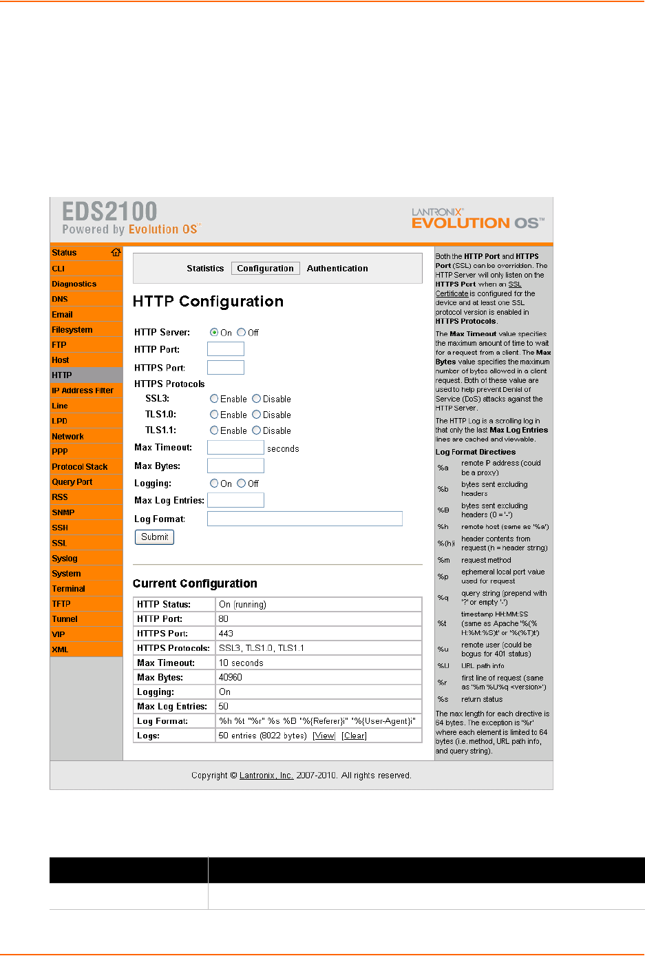 1. Click HTTP > Configuration. Figure 10-8 shows the page that displays.