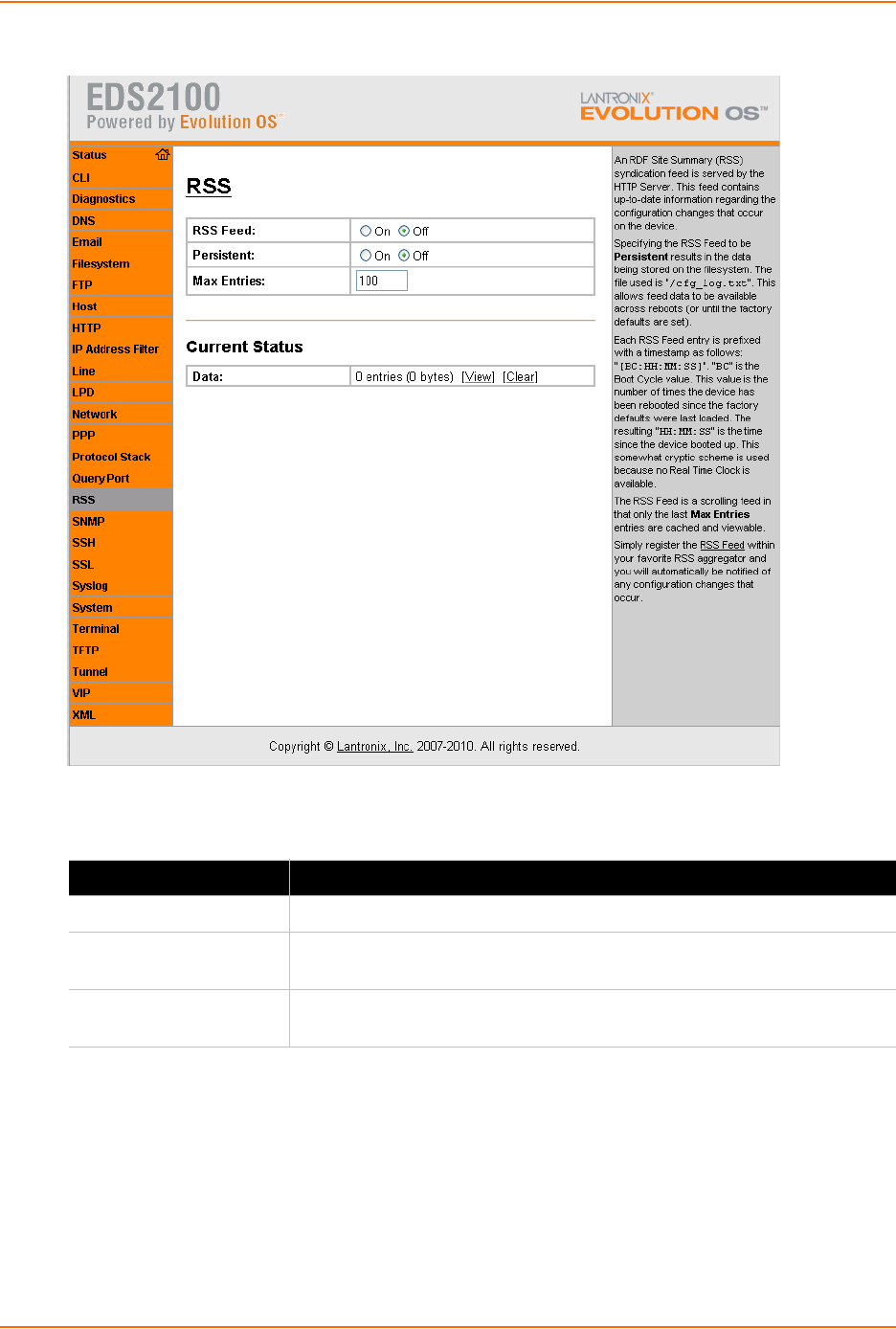 RSS Feed Select On to enable RSS feeds to an RSS publisher.