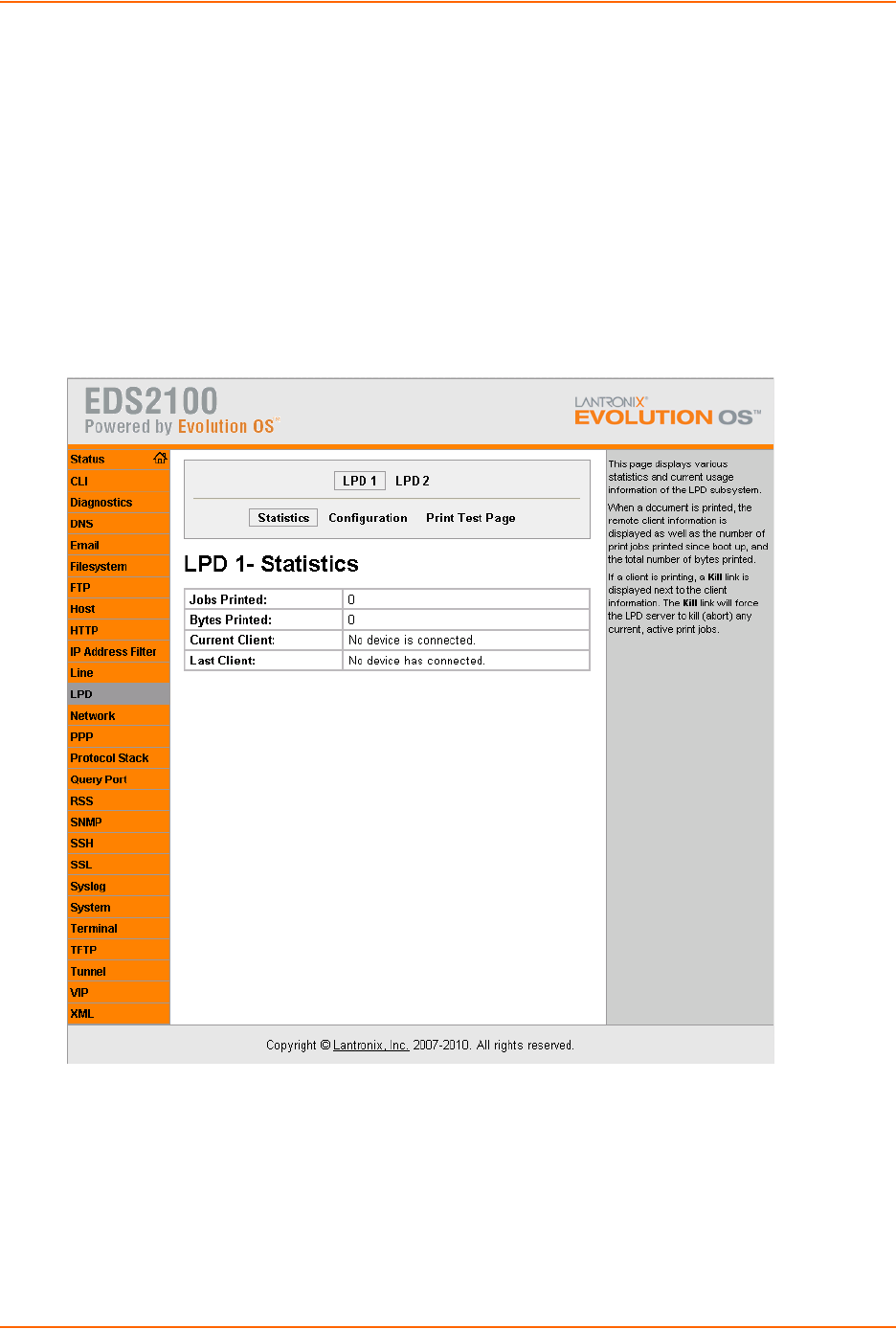 1. Click LPD on the Main Menu. Figure 10-11 shows the page that displays.