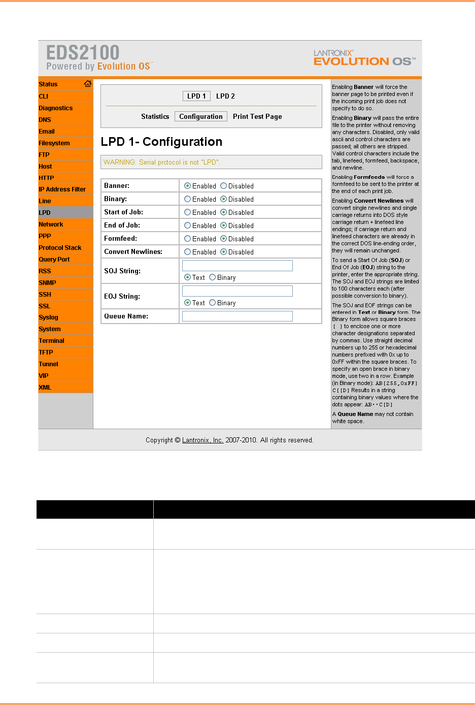 Table 10-9 LPD Configuration Fields
