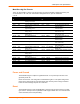 2:Description and Specifications Table 2-1. RS232 Connections MatchPort b/g Pro DCE Connector DTE Connector Signal (Logic) RXD1 TXD1 RTS1 CTS1 CPx CPy DB9 DB25 Signal DB9 DB25 Signal 2 3 7 8 1 4 3 2 4 5 8 20 RXD1 TXD1 RTS1 CTS1 DCD DTR 3 2 8 7 4 1 2 3 5 4 20 8 TXD1 RXD1 CTS1 RTS1 DTR DCD Description Data In Data Out H/W Flow Control Output H/W Flow Control Input Modem Control Input Modem Control Output Table 2-2.