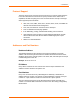 2: Introduction Protocol Support The XPort device server uses the Internet Protocol (IP) for network communications. It uses the Transmission Control Protocol (TCP) to assure that no data is lost or duplicated, and that everything sent to the connection arrives correctly at the target. Other supported protocols include: ARP, UDP, TCP, ICMP, Telnet, TFTP, AutoIP, DHCP, HTTP, and SNMP for network communications and management. TCP, UDP, and Telnet for connections to the serial port.