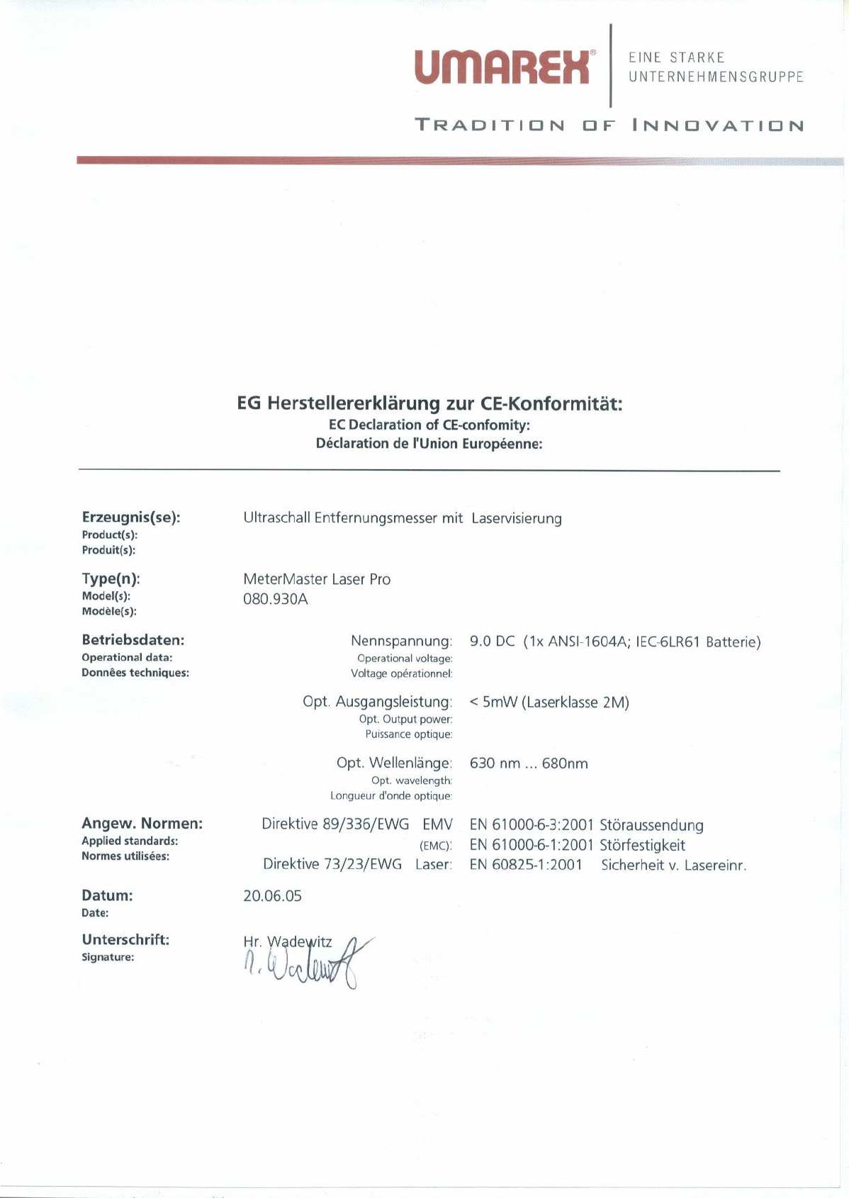 Declaration of conformity