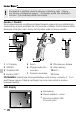 VideoScope One Введення в експлуатацію 1 2 3 4 ON/OFF AA AA AA AA 4x AA Функції під час переносу зображення Вирівняти голівку камери на гнучкому шлангу і підвести її в потрібне положення. За поганих умов освітлення ввімкнути світлодіодне освітлення. Скористатися зумом для роботи з віддаленими чи малими об’єктами. За допомогою функції ручного повороту зображення на моніторі буде повернуто на 180°. + 2.