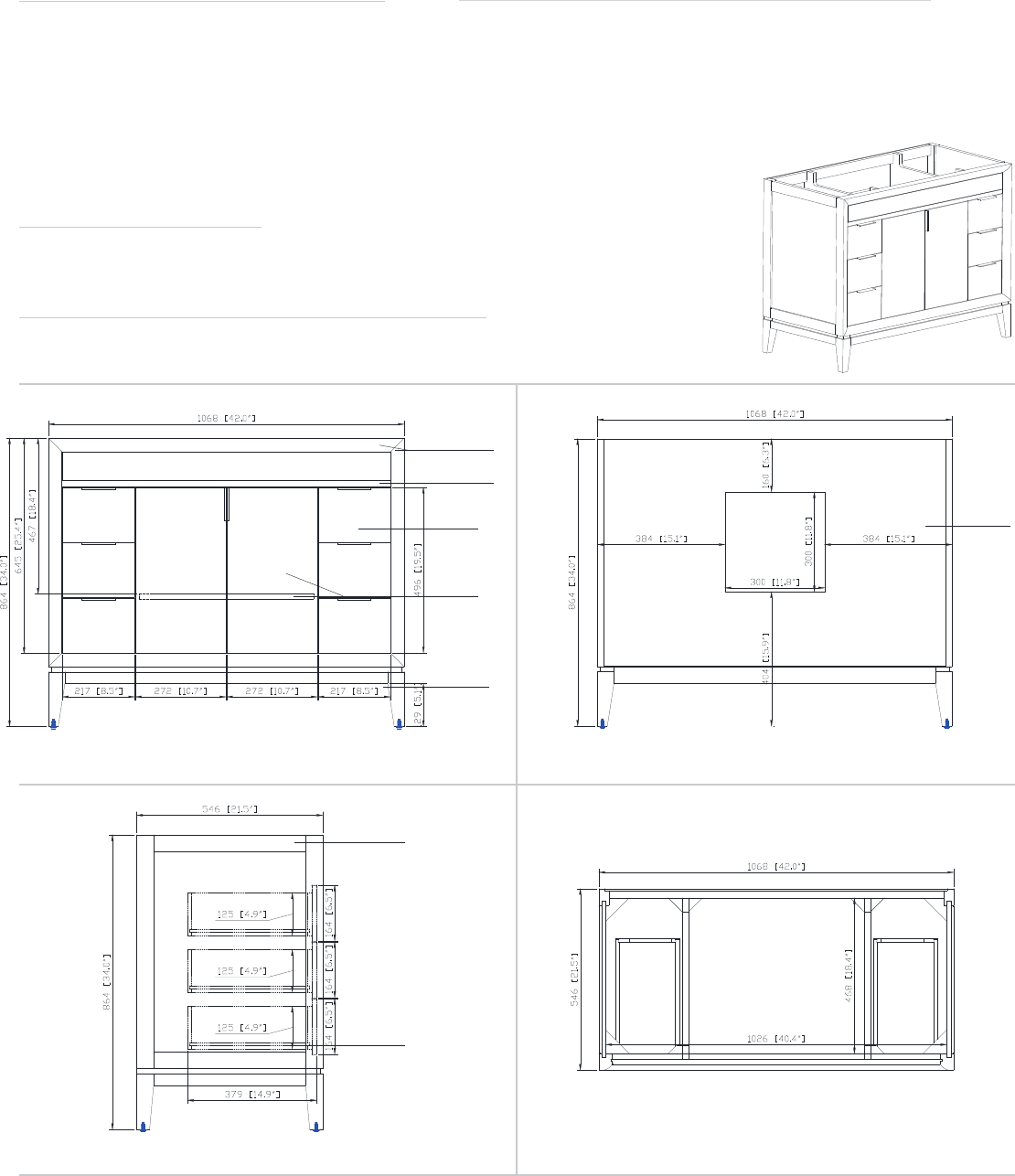 • 42W x 21.5D x 34H inches | 1068 x546 x 864 mm