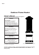 Model (PEHU Outdoor Flame Heater Owner’s Manual Read these instructions before lighting this appliance. DANGER If you smell gas: 1. Shut off gas to the appliance. 2. Extinguish any open flame. 3. If odor continues, keep away from the appliance and immediately call your gas supplier or fire department. WARNING Do not store or use gasoline or other flammable vapors and liquids in the vicinity of this or any other appliance.