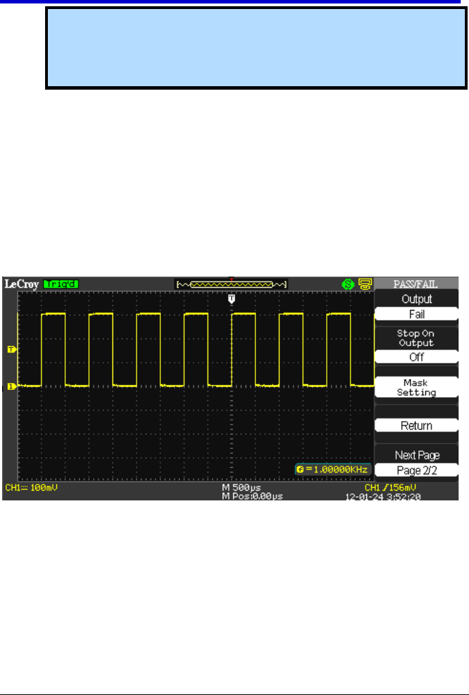 3. Use the Operate option button to run and stop the Pass/Fail test.