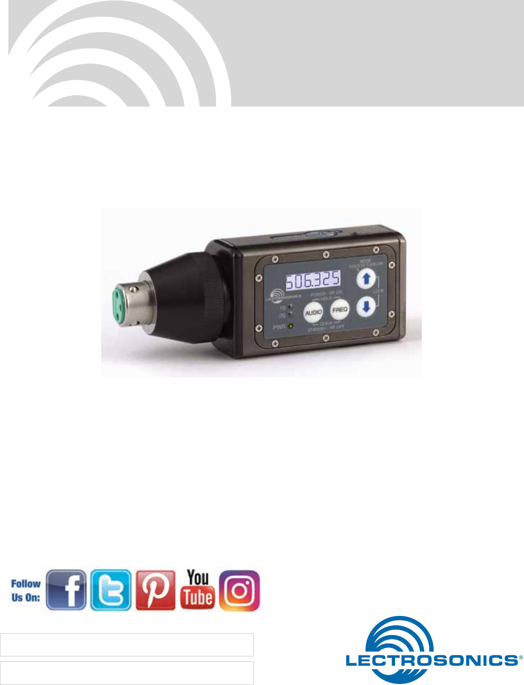 INSTRUCTION MANUAL HMa Wideband Plug-On Transmitter With Digital Hybrid Wireless® Technology Digital Hybrid Wireless® US Patent 7,225,135 Fill in for your records: Serial Number: Purchase Date: Rio Rancho, NM, USA www.lectrosonics.