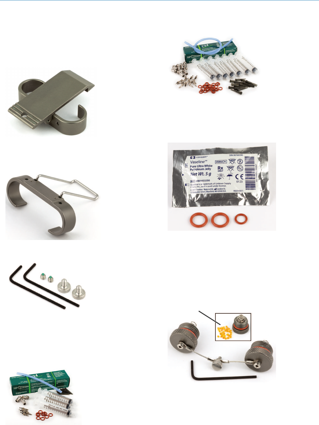 caps, O-rings, lanyards, thumbscrew and allen wrench.