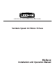 1.0 GENERAL 1.1 PRODUCTS COVERED IN THIS MANUAL This manual covers the Leeson Electric Corporation SM-Basic Series Variable Frequency Drive. 1.2 PRODUCT CHANGES Leeson Electric Corporation reserves the right to discontinue or make modifications to the design of its products without prior notice, and holds no obligation to make modifications to products sold previously. Leeson Electric Corporation also holds no liability for losses of any kind which may result from this action. 1.