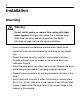 4 Installation Mounting Warning Do not install, rewire, or remove this control with input power applied. Doing so may cause fire or serious injury. Make sure you have read and understood the Safety Warnings on page i before attempting installation. • Drive components are sensitive to electrostatic fields. Avoid contact with the circuit board directly. Hold drive by the chassis only. • Protect the drive from dirt, moisture, and accidental contact.