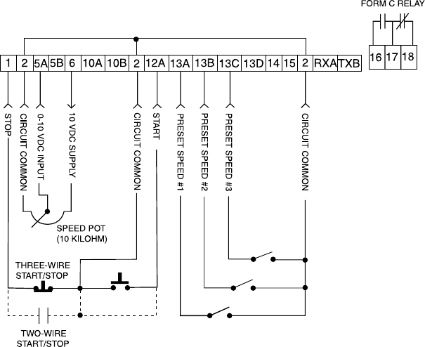 speed control, and either a two-wire or three-wire START/STOP circuit: