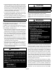12− If the appliance will not operate, follow the instructions Turning Off Gas to Unit" and call your service technician or gas supplier. Turning Off Gas to Unit 1 − Set the thermostat to the lowest setting. 2 − Turn off all electrical power to the unit if service is to be performed. 3 − Remove the upper access panel. 4 − White Rodgers 36E Gas Valve − Move gas valve switch to OFF. Honeywell VR8205 Gas Valve − Move switch on gas to OFF. Do not force. valve clockwise 5 − Replace the upper access panel.
