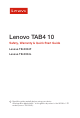 Lenovo TAB4 10 Safety, Warranty & Quick Start Guide Lenovo TB-X304F Lenovo TB-X304L Read this guide carefully before using your device. All information labeled with * in this guide only refers to the WLAN + LTE model (Lenovo TB-X304L).