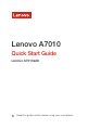 Lenovo A7010 Quick Start Guide Lenovo A7010a48 Read this guide carefully before using your smartphone.