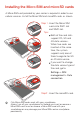 Installing the Micro SIM and microSD cards A Micro SIM card provided by your carrier is required in order to use cellular services. Install the Micro SIM and microSD cards as shown. IM ro S Mic IM S icro M Micro Micro SIM SIM IM ro S Mic IM ro S Mic IM ro S Mic IM ro S Mic SIM o r Mic M o SI Micr IM ro S Mic Step 1. Insert the Micro SIM cards into SIM1 slot and SIM2 slot. Tips: Both of the card slots support 2G, 3G and 4G data services.