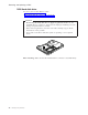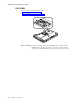 Unlock the battery release lever 1 and holding the battery release lever in the