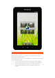 Zoom: Ad djust the size of a photo (fro om 1x to 4x). Select camera wing Phottos View In the photo ta aking preview interfac ce, in the ve ertical mod de, ch Photo Prreview on lo ower right to open the e photo touc prev view interfa ace. Here, you y can sett and play photo p slide eshows. oto Saving g Location Pho Any y photos you have take en will be saved s in the e" Gallery" application. In th he applications list, touch " Gallery" to ope en the list o of all the ph hotos you have h taken..