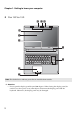 Contents Chapter 1. Getting to know your computer .......................................... 1 Top view .......................................................................................................................1 Left-side view ..............................................................................................................9 Right-side view..........................................................................................................12 Front view .........................