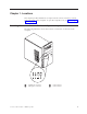 Chapter 1. Locations This chapter provides illustrations to help locate the various connectors, controls and components of the computer. To open the computer cover, see “Removing the cover” on page 7. Locating the connectors on the front of your computer The following illustration shows the location of connectors on the front of the computer. 1 2 Headphone connector Microphone connector © Lenovo 2005. Portions © IBM Corp. 2005.