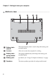Chapter 1. Getting to know your computer Bottom view -----------------------------------------------------------------------------------------a b c d e a Battery latch manual The manual battery latch is used to keep the battery pack secured in place. b Louvers Allow air to enter the computer for cooling. c Battery latch spring loaded The spring-loaded battery latch keeps the battery pack secured in place. d Battery pack For details, see “Using AC adapter and battery” on page 8.