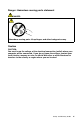 Rechargeable battery notice DANGER Do not attempt to disassemble or modify the battery pack. Attempting to do so can cause an explosion, or liquid leakage from the battery pack. A battery pack other than the one specified by Lenovo, or a disassembled or modified battery pack is not covered by the warranty. If the rechargeable battery pack is incorrectly replaced, there is danger of an explosion. The battery pack contains a small amount of harmful substances.