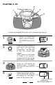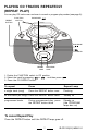 PLAYING CD TRACKS REPEATEDLY (REPEAT PLAY) You can play CD tracks over and over in normal or program play modes (see page 8). REPEAT BUTTON FUNCTION SWITCH BACKWARD PLAY/PAUSE FORWARD REPEAT LAMP PROGRAM LAMP 1. Rotate the FUNCTION switch to CD position. 2. Select the track by pressing or , and then press 3. Press the CD REPEAT button. .