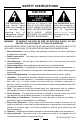 SAFETY INSTRUCTIONS CAUTION RISK OF ELECTRIC SHOCK DO NOT OPEN The lightning flash and arrow head within the triangle is a warning sign alerting you of dangerous voltage inside the product. WARNING: CAUTION: TO REDUCE THE RISK OF ELECTRIC SHOCK, DO NOT REMOVE COVER (OR BACK). NO USER SERVICEABLE PARTS INSIDE. REFER SERVICING TO QUALIFIED SERVICE PERSONNEL. The exclamation point within the triangle is a warning sign alerting you of important i n s t r u c t i o n s accompanying the product.