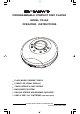 PROGRAMMABLE COMPACT DISC PLAYER MODEL CD-565 OPERATING INSTRUCTIONS PLAYS MUSIC COMPACT DISCS 6 DIGIT LCD VISUAL DISPLAY TRACK REPEAT & DISC REPEAT BASS BOOST SYSTEM DELUXE STEREO HEADPHONES INCLUDED USES 2 SIZE AA BATTERIES (NOT INCLUDED) PLEASE READ CAREFULLY BEFORE USE IB-CD565(25G-0L9)-WM-E-120903