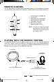 REMOTE CONTROL You can control the CD PLAYER with the provided remote control (including the functions of PLAY/PAUSE AND POWER ON, STOP/OFF, SKIP/SEARCH and VOLUME CONTROL). 7 1. 2. 3. 4. 5. 6. 7. 6 1 5 2 3 PLAY/PAUSE & POWER ON STOP/OFF SKIP/SEARCH BACKWARD SKIP/SEARCH FORWARD VOLUME CONTROL BELT CLIP (at back) HEADPHONES JACK NOTE: You can only adjust the volume by rotating the VOLUME CONTROL when you play the set with the remote control.