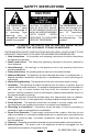 SAFETY INSTRUCTIONS CAUTION RISK OF ELECTRIC SHOCK DO NOT OPEN The lightning flash and arrow head within the triangle is a warning sign alerting you of dangerous voltage inside the product. WARNING: CAUTION: TO REDUCE THE RISK OF ELECTRIC SHOCK, DO NOT REMOVE COVER (OR BACK). NO USER SERVICEABLE PA RTS INSIDE. REFER SERVICING TO QUALIFIED SERVICE PERSONNEL. The exclamation point within the triangle is a warning sign alerting you of important i n s t r u c t i o n s accompanying the product.